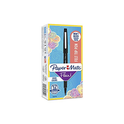 | Paper Mate Flair Felt Tip Pens, Medium Point (0.7mm), Black, 12 Count | |
