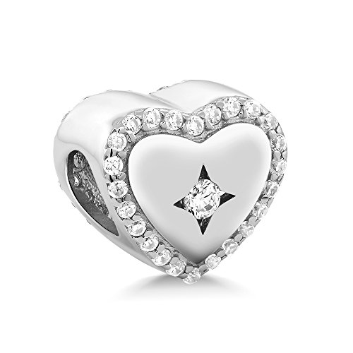 | Sterling Silver White Heart Shape Cubic Zirconia 11X13MM Bead Charm Compatible W/ Pandora Bracelets | |